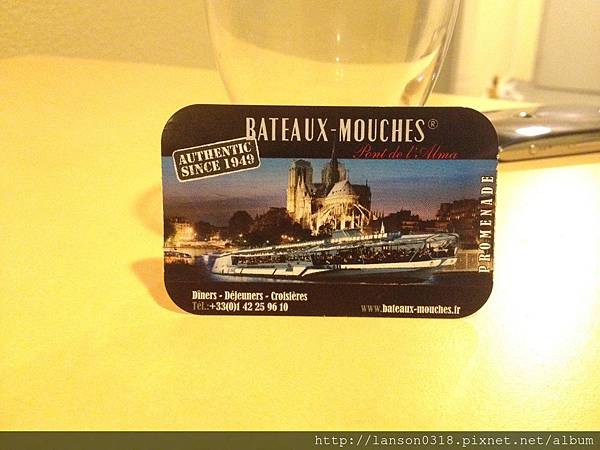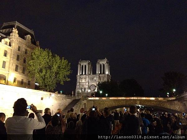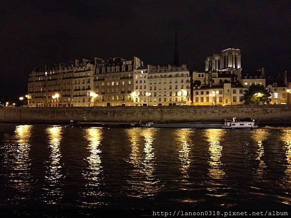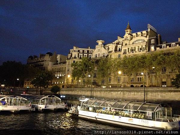 其實白天時的塞納河,就有許多觀光船進出導覽,通常都是大船,豪華程度各不一。有些上面設有餐廳,可以一邊吃大餐一邊欣賞風光,也有一些純粹觀光性質,船上會以多國語言或法文介紹行經的景色。而我們坐的大船叫做bateaux mouches,船非常大隻,經過各景點也都會以不同語言,如法文、英文、德文、西文、韓文、日文、中文等,介紹該景點的簡要背景。