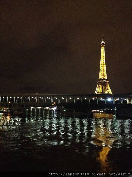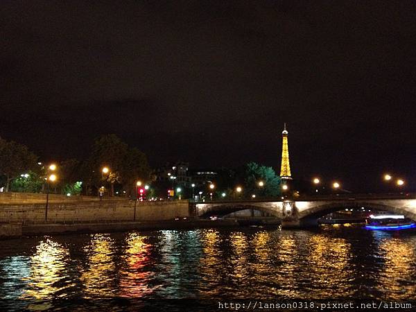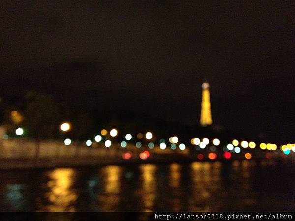 (遠離巴黎鐵塔,河流波光粼粼,閃爍著巴黎鐵塔的耀眼)