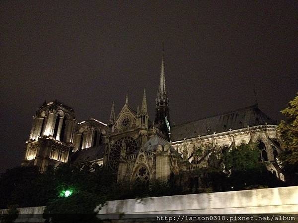 今天剛好天氣變差,烏雲密佈。幸好我有帶圍巾、外套出門,不然晚上只有15度的巴黎,特別又是在行駛中的船上,絕對會冷到受不了。船的路線通常是直接開往聖母院方向,繞一圈後再開到巴黎鐵塔附近,最後回去原港口。總共歷時約45分鐘至一小時。